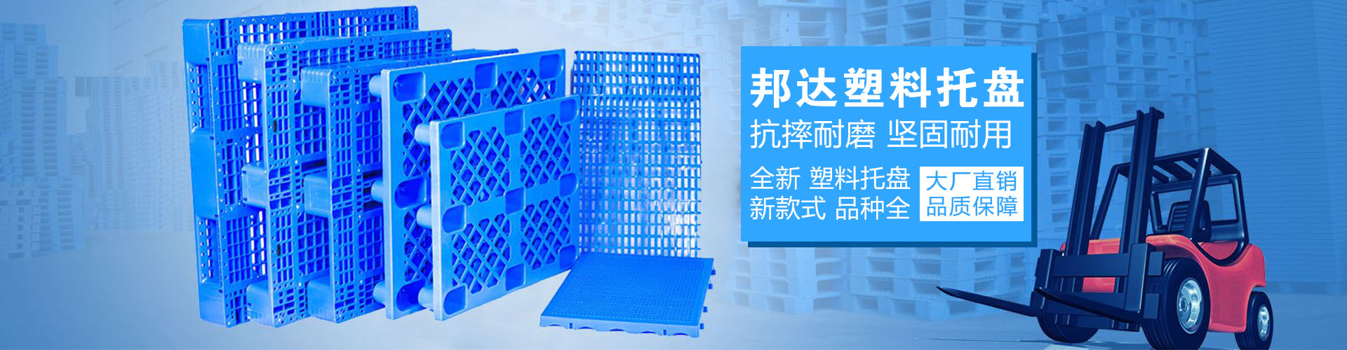 塑料托盤廠家|濟南塑料托盤|川字塑料托盤|山東邦達包裝   山東邦達托盤公司于2005年設定于牡丹之鄉一-菏澤市巨野縣,是集木質托盤、塑料托盤、空心吹塑托盤、熏蒸出口托盤、無檢驗托盤、膠合板托盤、包裝箱、包裝材料為一體的大型倉儲包裝企業,公司專業從事大型工業包裝產品的研發、制造,銷售與服務。經過多年的努力和發展,公司每年生產和銷售200萬個產品,每天生產3000多個木質托盤和2000多個塑料托盤。技術工人15人,生產工人78人,管理人員12人。15年來,公司建立了完善的質量保證體系和產品售后服務體系,并獲得了ISO9001質量管理體系認證,公司的產品憑借多樣的品種,合理的設計,可靠的質量,在工業包裝行業上樹立了良好的口碑,受到了各級領導的高度肯定以及廣大客戶朋友的長久支持。   我廠一貫奉行“以人為本,以德治企,以身作則,以信立業”的發展方針,產品質量永遠是企業生產的根本,一切產品在原料、生產、成品供應的運作過程中,嚴格執行質量保證體系,保證每一件產品均符合客戶的要求,必將成為中國包裝行業第一品牌。目前,公司生產的塑料托盤、吹塑托盤、木質托盤、膠合板托盤、美國標準木質托盤、歐洲標準木質托盤、包裝箱、大型出口包裝項目等一系列產品,已被國內外大型生產企業采購和使用。公司本著“質量立企、誠信為本、信譽至上”的經營理念,真誠的期待與您友好合作和共同發展。